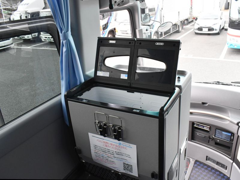 カーテン・冷蔵庫標準装備です。 正座席20名、補助席6名、定員26名までご乗車可能。 送迎や合宿、視察など移動に大変便利です。