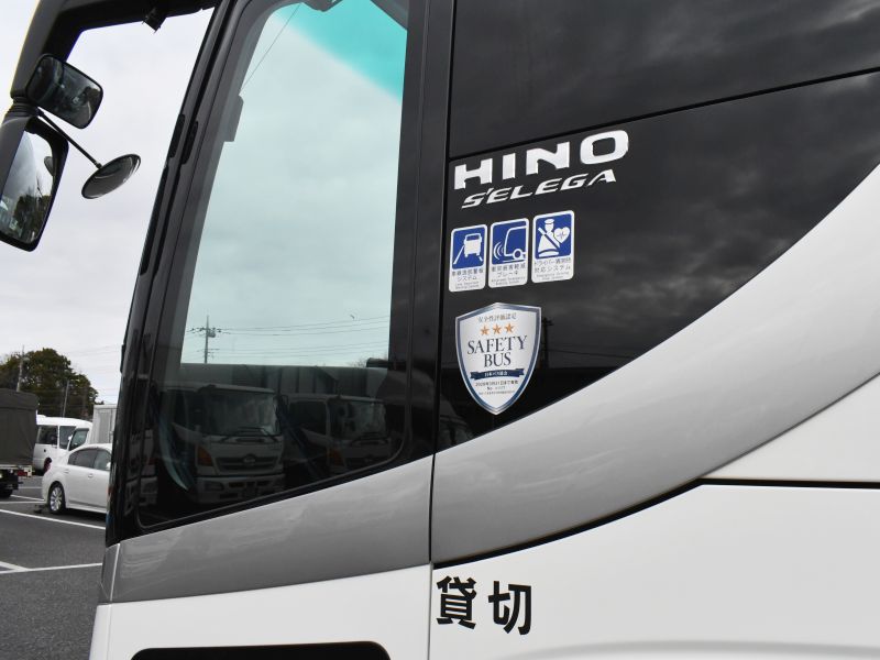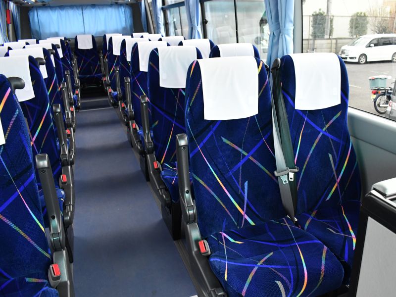 TV(地デジ対応)・冷蔵庫・カーテン・貫通トランク・カラオケが装備されたサロンタイプの観光バスです。 正席27名までご乗車可能。 合宿や遠方への旅行、お荷物が多い移動に便利です。